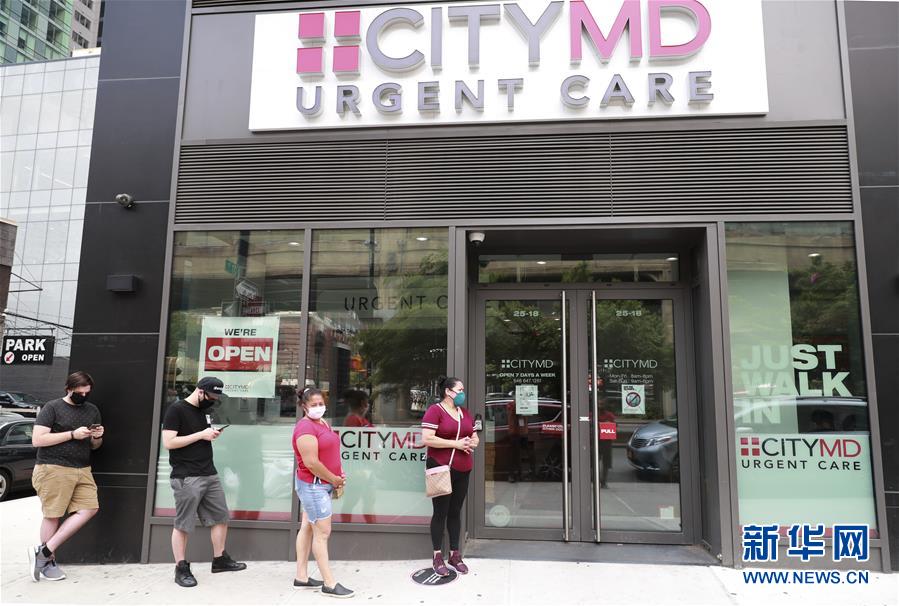 7月8日,人們在美國紐約一家診所外排隊等候進行新冠病毒檢測。美國約翰斯·霍普金斯大學8日發(fā)布的新冠疫情最新統(tǒng)計數(shù)據(jù)顯示,美國累計確診病例超過300萬例。數(shù)據(jù)顯示,截至美國東部時間8日11時34分(北京時間23時34分),美國累計確診病例3016515例,累計死亡病例131594例。新華社記者王迎攝