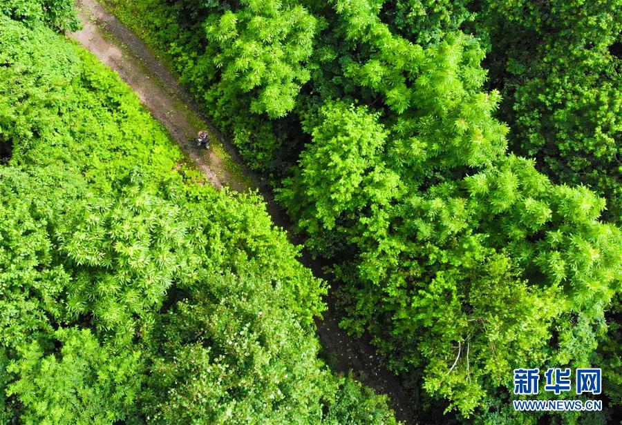 7月8日,董紅雨在迎春林業(yè)局有限公司施業(yè)區(qū)內(nèi)進(jìn)行野生東北虎信息搜集和巡護(hù)工作(無人機(jī)照片)。新華社記者王松攝