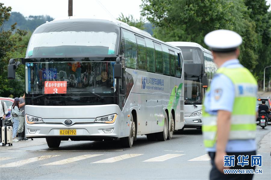 7月9日,接送考生的大巴車抵達(dá)歙縣第二中學(xué)考點(diǎn)。受強(qiáng)降雨影響,2020年高考安徽歙縣考區(qū)7月7日未能如期開考,經(jīng)研究并報(bào)教育部批準(zhǔn),歙縣考區(qū)于9日啟用2020年普通高等學(xué)校招生全國統(tǒng)一考試語文、數(shù)學(xué)(文、理)科目副題進(jìn)行考試。新華社記者黃博涵攝