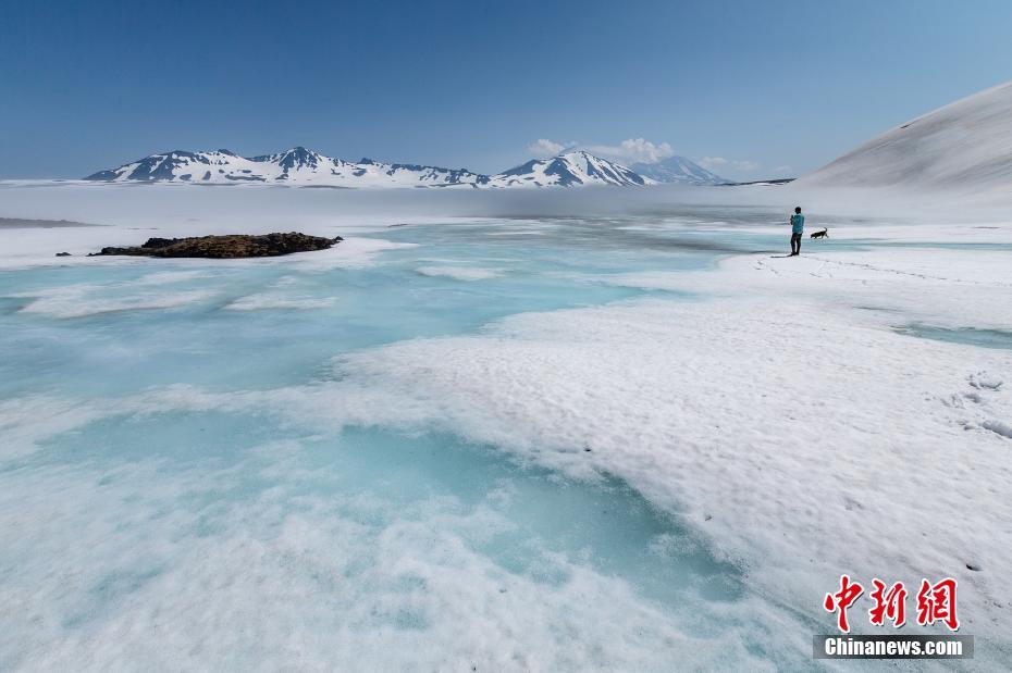 當?shù)貢r間2020年7月7日,俄羅斯堪察加半島,Gorely火山附近的Sredinnoye火山湖。這個湖斷斷續(xù)續(xù)的,是6月底到8月初融雪形成的。圖片來源:視覺中國