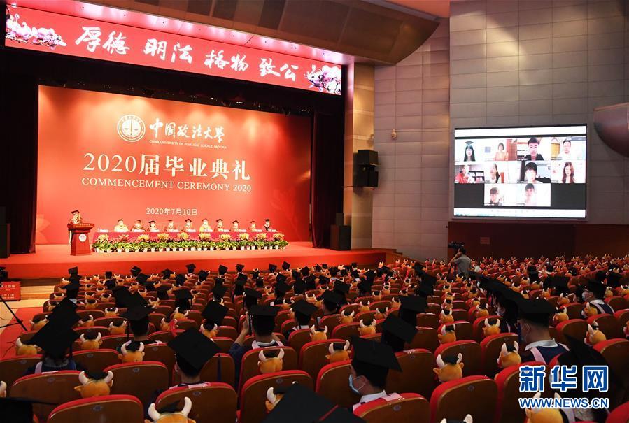 7月10日拍攝的中國政法大學2020屆畢業(yè)典禮現場。當日,中國政法大學舉行2020屆畢業(yè)典禮。由于疫情防控需要,僅少量在校畢業(yè)生在中國政法大學昌平校區(qū)禮堂現場參加畢業(yè)典禮,更多畢業(yè)生通過線上直播參與。新華社記者任超攝