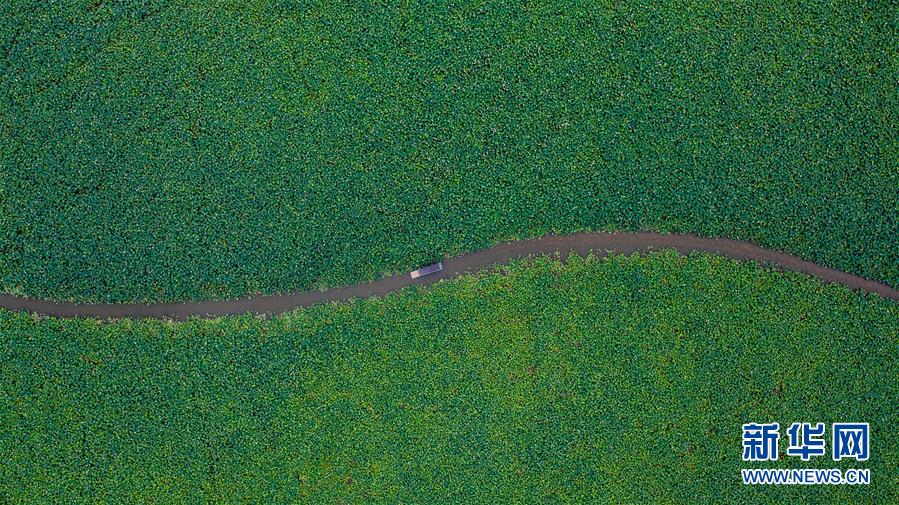 游人在普者黑國家濕地公園泛舟賞景(7月10日攝,無人機(jī)照片)。新華社記者胡超攝