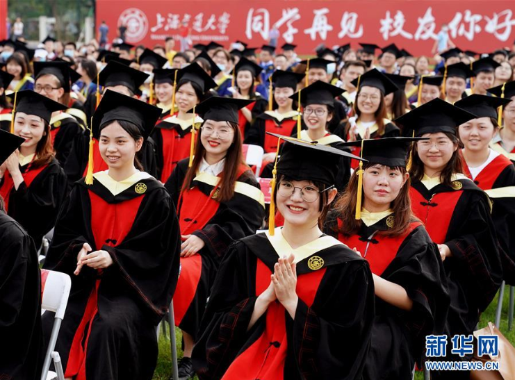 7月12日,畢業(yè)生在現(xiàn)場參加上海交通大學2020年畢業(yè)典禮。新華社記者 劉穎 攝
