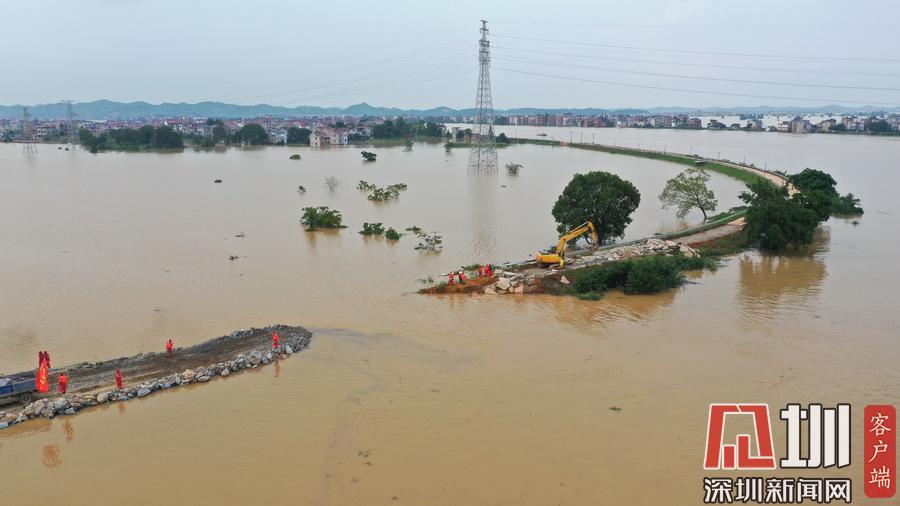 江西鄱陽縣問桂道圩漫決口 封堵進入最后攻堅階段