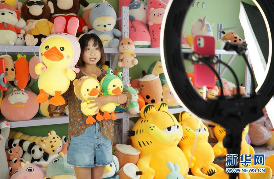 7月13日,河北省內(nèi)丘縣一家玩具生產(chǎn)企業(yè)工作人員通過(guò)網(wǎng)絡(luò)直播銷售毛絨玩具。近年來(lái),河北省內(nèi)丘縣積極拓寬農(nóng)村留守婦女就業(yè)創(chuàng)業(yè)渠道,通過(guò)開(kāi)展就業(yè)技能培訓(xùn),對(duì)接用工企業(yè)為農(nóng)村留守婦女搭建就業(yè)平臺(tái),吸納農(nóng)村婦女在家門口穩(wěn)定就業(yè)增收,實(shí)現(xiàn)顧家、賺錢兩不誤。新華社記者 朱旭東 攝
