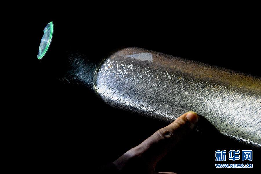 技術(shù)員查看打磨后的鋼軌(7月14日攝)。新華社記者 丁磊 攝