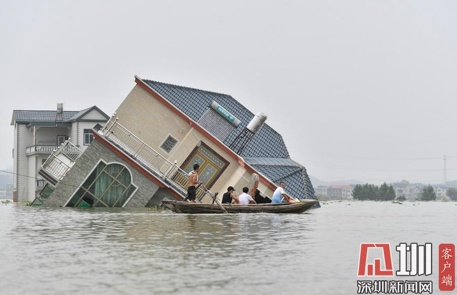 2020年7月15日,江西省鄱陽縣油墩街鎮(zhèn)同興村,村莊受到洪水圍困,大部分村民已經(jīng)被轉(zhuǎn)移出去,仍有少數(shù)村民選擇留守家中積極自救繼續(xù)生活。7月8日晚,鄱陽縣油墩街鎮(zhèn)西江因特大暴雨出現(xiàn)漫堤決口,5個行政村被洪水圍困,數(shù)萬名群眾被及時疏散轉(zhuǎn)移。同興村村民張瑤康回憶起了當(dāng)時的場景,“水一下子就涌進(jìn)來,等緩過神來趕緊向二樓轉(zhuǎn)移一樓的物品。洪水來時只從一樓搶到了一些輕便易拿的東西,冰箱、洗衣機(jī)之類的大物件,至今仍浸泡在一樓水中?!?5日,記者跟隨張瑤康乘船回家,抵達(dá)后看到,一樓淹沒在水中,一個綁在二樓護(hù)欄的木梯成為進(jìn)出“家門”的唯一通道?!懊刻靹澊ゴ謇镞\送水和食物,家里有煤氣罐和灶臺。因為80多歲的老母親行動不便,我們選擇留守家中。”“雖然對岸就有安置點,但還是更愿待在自己家里,一來是不愿意給政府添麻煩,二來能每天看著自己的房子心里踏實?!蓖d村村民張長來夫婦帶著剛剛領(lǐng)到的大米、方便面、飲用水乘船回到家中。記者在現(xiàn)場看到,隨著各方救援力量和物資的匯聚,被洪水圍困的村民生活雖有不便,但生活仍在繼續(xù)?!胺孔硬坏?,家就在,我們要積極面對,早日重建家園?!睆埇幙蹈嬖V記者。