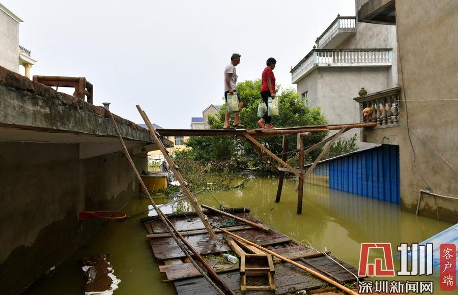江西鄱陽村莊洪水圍困 留守村民劃船外出取生活物資