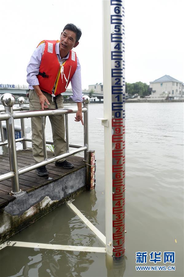 7月17日,王江涇水文站工作人員介紹京杭大運(yùn)河水位情況。浙江省嘉興市秀洲區(qū)處在杭嘉湖平原,受持續(xù)強(qiáng)降雨及上游排水影響,近期,秀洲區(qū)境內(nèi)的京杭大運(yùn)河分支航道持續(xù)保持較高水位。當(dāng)?shù)叵嚓P(guān)部門嚴(yán)陣以待,落實(shí)各項(xiàng)措施,確保安全度汛。新華社記者韓傳號攝