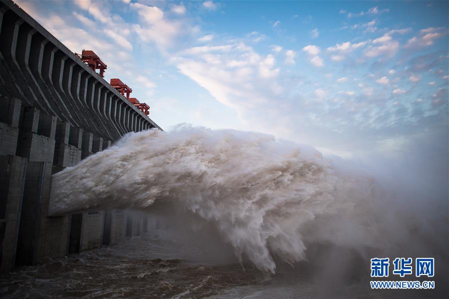 7月19日,三峽樞紐開啟泄洪深孔泄洪。19日20時(shí),三峽水庫入庫流量4.6萬立方米/秒,較本輪洪水的峰值6.1萬立方米/秒下降了1.5萬立方米/秒?!伴L江2020年第2號(hào)洪水”平穩(wěn)通過三峽大壩。新華社記者肖藝九攝