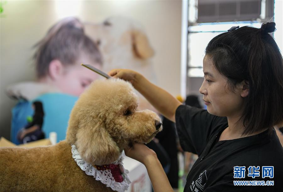 7月19日,在成都世紀城新國際會展中心,一家寵物美容學校的工作人員演示給寵物犬梳毛。當日,第九屆成都國際寵博會進入最后一天。此次展會展出面積30000平方米,匯聚國內(nèi)外品牌企業(yè)和產(chǎn)品,覆蓋中西部地區(qū)寵物行業(yè)食品、用品、醫(yī)療和服務(wù)等領(lǐng)域。新華社記者王曦攝