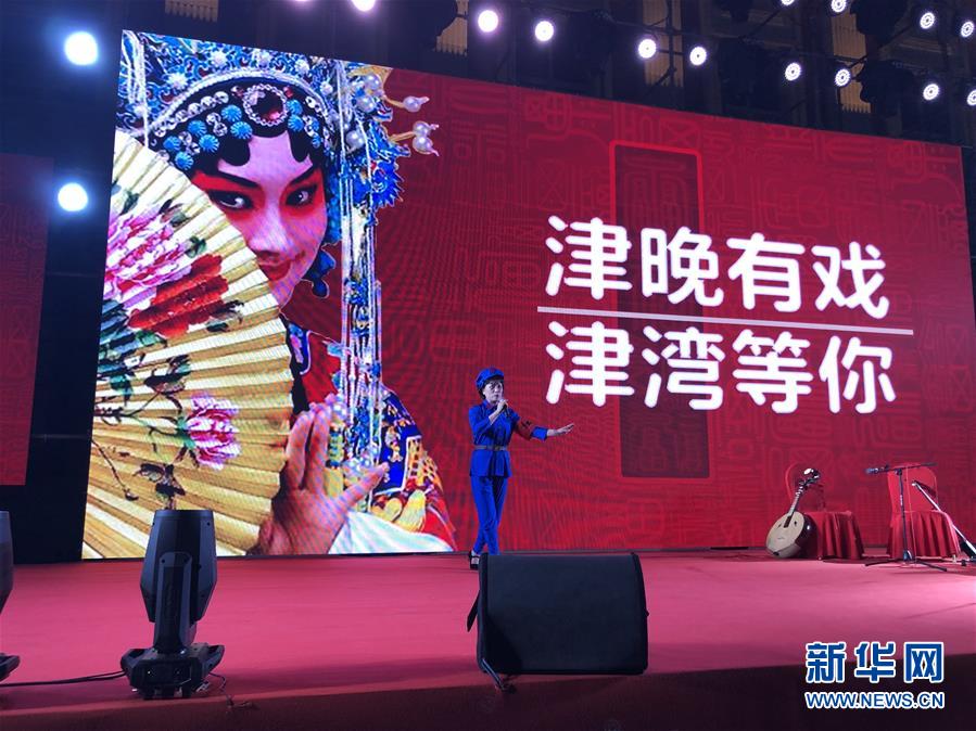 京劇愛好者在天津津灣廣場表演經典京劇唱段(7月19日手機拍攝)。新華社記者宋瑞攝
