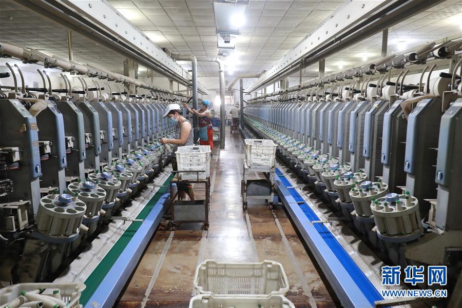 7月20日,工人在灤南縣長凝鎮(zhèn)的一家紡織廠生產(chǎn)車間里工作。近年來,河北省灤南縣大力發(fā)展村邊民營企業(yè),引導企業(yè)在鄉(xiāng)鎮(zhèn)村邊建廠,帶動當?shù)?萬多名農(nóng)村群眾在村邊就近就業(yè),實現(xiàn)穩(wěn)步增收。新華社記者楊世堯攝