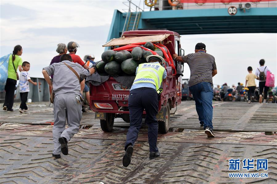 在江西省九江市柴桑區(qū)江新洲的渡口,部分居民登上渡輪撤離(7月12日攝)。新華社記者彭昭之?dāng)z