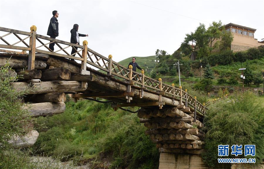 阿壩縣查理鄉(xiāng)神座村內(nèi)的伸臂橋(7月5日攝)。新華社記者陳燮攝
