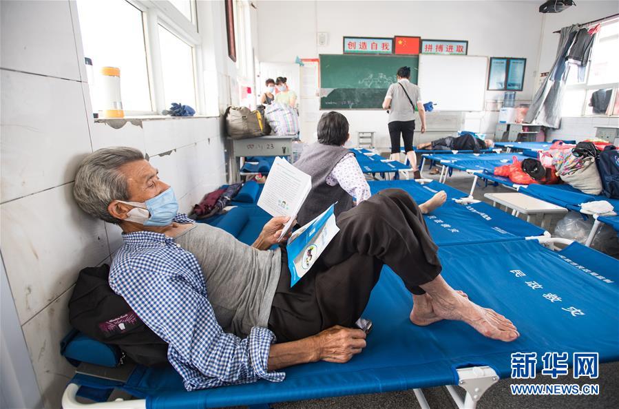 7月9日,村民戴口罩在湖北省黃梅縣濯港鎮(zhèn)十里益海小學(xué)集中安置點(diǎn)休息。新華社記者 肖藝九 攝