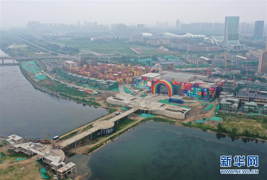 7月28日拍攝的建設(shè)中的遷安市中唐·天元谷文化旅游綜合體項目(無人機(jī)照片)。新華社記者楊世堯攝