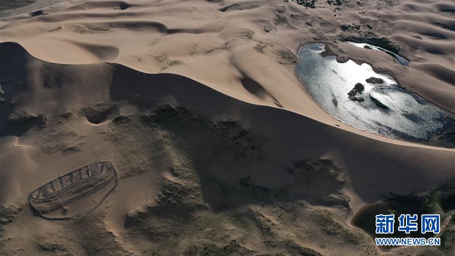 這是7月28日拍攝的青海湖沙島一隅(無(wú)人機(jī)照片)。盛夏傍晚,位于青海湖東北部的沙島,島內(nèi)湖泊星羅棋布,沙丘連綿起伏,風(fēng)景別致。金沙與湖水掩映,在陽(yáng)光的勾勒下形成一幅美麗的畫卷。新華社記者吳剛攝