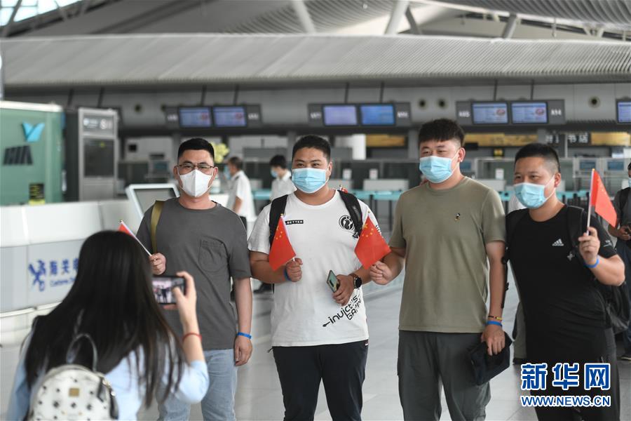 7月29日,在杭州蕭山國際機(jī)場,電力工程技術(shù)人員在進(jìn)入安檢通道前合影。當(dāng)日,中國能源建設(shè)集團(tuán)浙江火電建設(shè)有限公司的113名電力工程技術(shù)人員在杭州蕭山國際機(jī)場集結(jié),啟程飛赴印度尼西亞首都雅加達(dá)。他們將重新投入到印尼多個(gè)“一帶一路”重點(diǎn)工程的建設(shè)中。新華社記者黃宗治攝