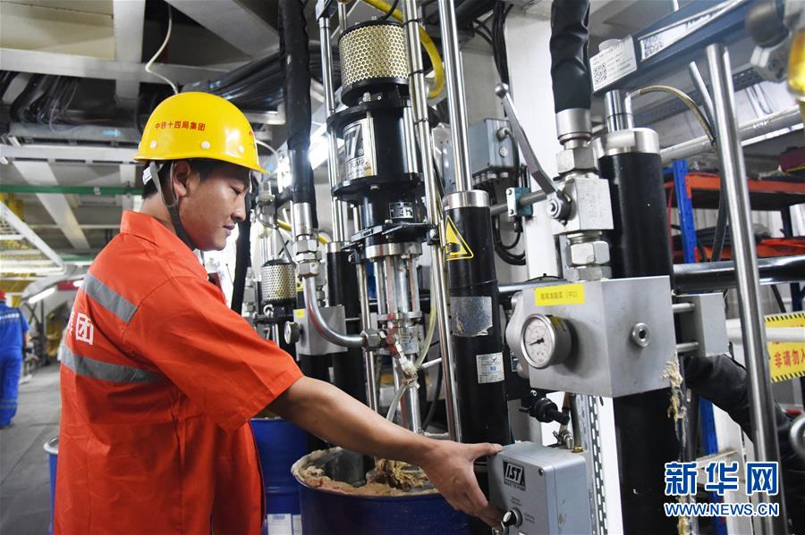 7月29日,“萬里黃河第一隧”——濟(jì)南黃河隧道工程施工人員在施工作業(yè)。新華社記者王凱攝
