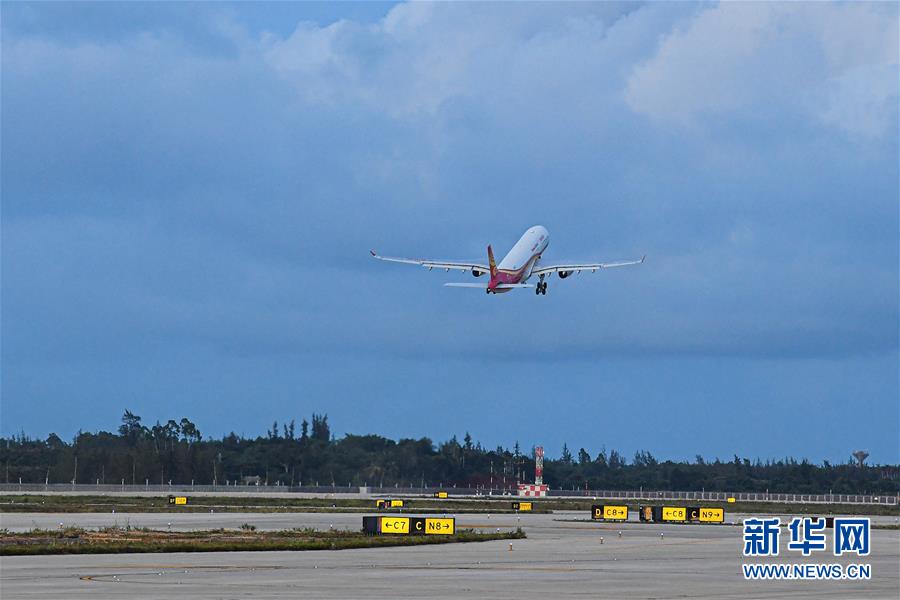 這是7月30日在海口美蘭國(guó)際機(jī)場(chǎng)二期擴(kuò)建項(xiàng)目拍攝的試飛現(xiàn)場(chǎng)。新華社記者蒲曉旭攝