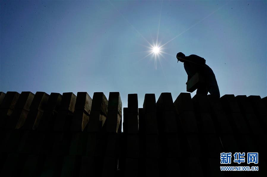 7月30日,河北省任丘市出岸鎮(zhèn)古建磚廠工人在擺放磚坯。新華社記者牟宇攝