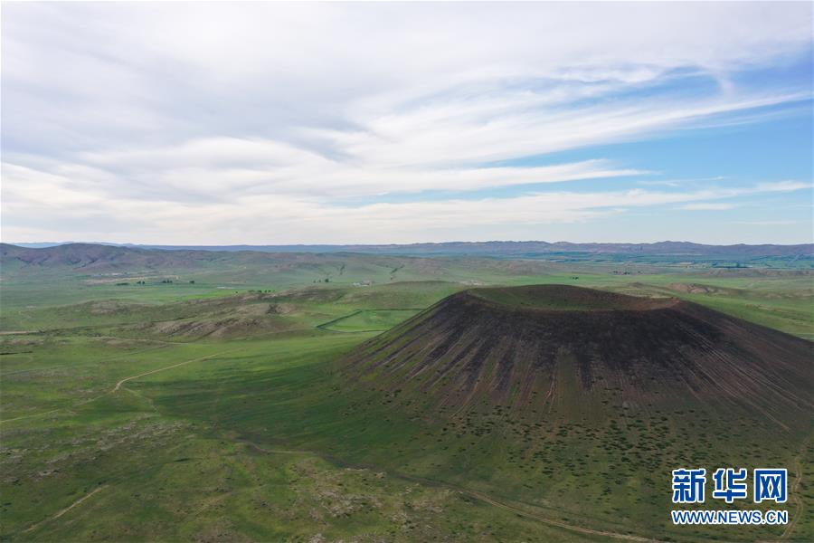 烏蘭哈達火山群位于內(nèi)蒙古自治區(qū)烏蘭察布市察哈爾右翼后旗的草原上。夏日里,綠草青青,一碧千里,坐落在草原上的火山與周邊的風景構(gòu)成一幅幅壯美畫卷。