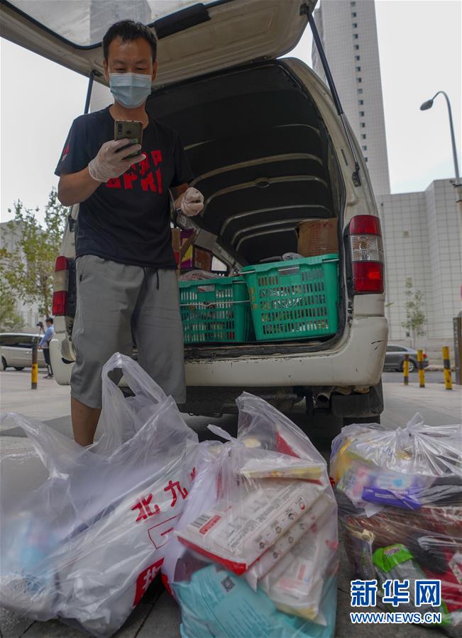 7月30日,在烏魯木齊經(jīng)濟(jì)技術(shù)開(kāi)發(fā)區(qū)(頭屯河區(qū))萬(wàn)達(dá)華府小區(qū),商販打電話(huà)告知住戶(hù)訂購(gòu)的商品已經(jīng)送達(dá)。新華社記者趙戈攝