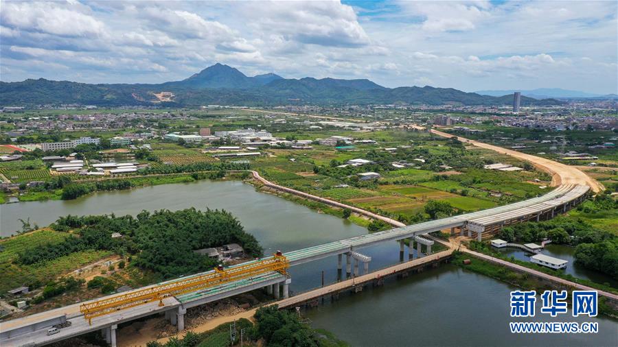 潮汕環(huán)線(xiàn)高速公路北溪河橋正在架梁(無(wú)人機(jī)照片,7月31日攝)。新華社記者劉大偉攝