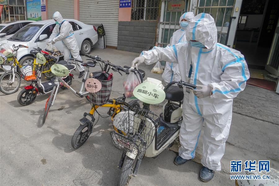 8月3日,在烏魯木齊天山區(qū)西河壩前街社區(qū),社區(qū)工作人員騎著”跑腿小車“為居民送去生活物品。新疆烏魯木齊市天山區(qū)西河壩前街社區(qū)主次干道較多,院落分布分散。新冠肺炎疫情防控期間,社區(qū)整合現(xiàn)有資源,將暫時(shí)閑置的自行車、電動(dòng)車集中起來,貼上“跑腿小車”標(biāo)識(shí),成立便民服務(wù)隊(duì),社區(qū)工作人員通過“跑腿小車”可將居民網(wǎng)絡(luò)定制的“菜袋子”“藥盒子”快速送達(dá),給居民帶來方便。新華社記者趙戈攝