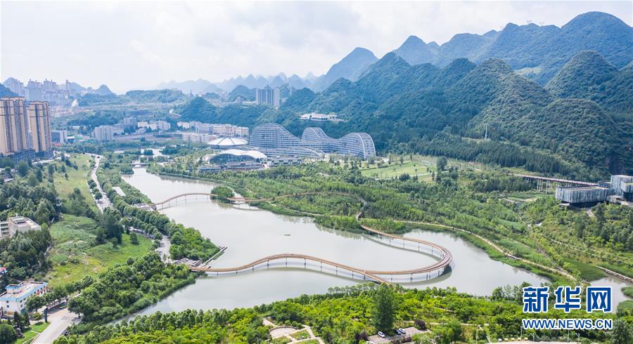 六盤水明湖國家濕地公園風(fēng)景(無人機(jī)照片,6月17日攝)。新華社記者陶亮攝