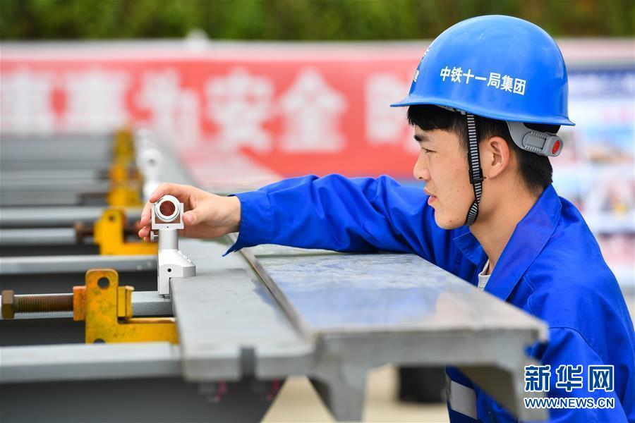 8月5日,中鐵十一局技術員在清遠磁浮軌排基地的試驗梁軌排上放置精調棱鏡。目前,廣東首條中低速磁浮線——清遠磁浮旅游專線項目建設有序推進。廣東清遠磁浮旅游專線項目全長約38公里,分兩期建設。首期全長8.014公里,將在9月份開始鋪軌,預計在2020年底實現(xiàn)主體工程全面完工。新華社記者劉大偉攝