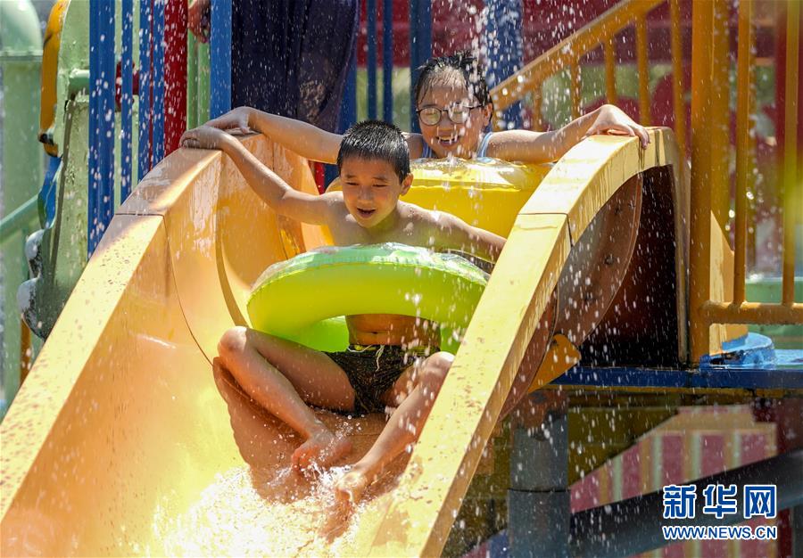 8月5日,重慶涪陵紅酒小鎮(zhèn)水上樂(lè)園內(nèi),市民在體驗(yàn)水上游樂(lè)項(xiàng)目。當(dāng)日,重慶市氣象臺(tái)再次發(fā)布“高溫橙色預(yù)警信號(hào)”,重慶大部分海拔400米以下地區(qū)日最高氣溫將升至37℃以上,局地可達(dá)40℃以上。許多重慶市民涌進(jìn)當(dāng)?shù)氐乃蠘?lè)園和泳池,在水中享受夏季的清涼。新華社記者劉潺攝