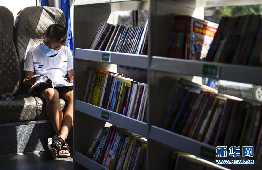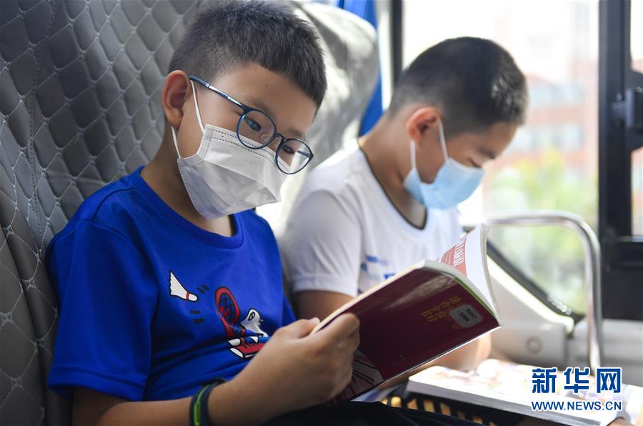 8月5日,小讀者在“流動圖書館”里看書。三千冊圖書,一輛大巴車,穿梭在城市的街頭巷尾。在吉林長春,長春市圖書館利用流動圖書車,定期在市內(nèi)15個固定服務(wù)點間巡回流動,為市民提供便捷的圖書借閱服務(wù)。新華社記者許暢攝