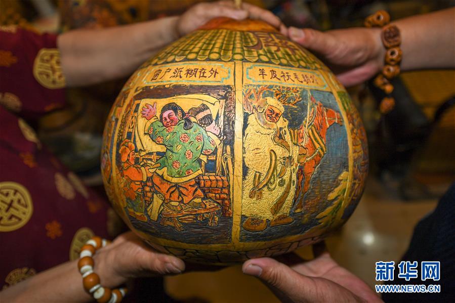 這是侯景偉創(chuàng)作的民俗主題葫蘆工藝品(8月5日攝)。今年55歲的吉林四平人侯景偉自幼與家人學(xué)習(xí)雕刻、烙畫藝術(shù)。經(jīng)過多年潛心研究,他將浮雕和烙畫工藝相結(jié)合,通過拋光、起稿、雕刻、烙燙、套色等十余道工藝,制作展現(xiàn)傳統(tǒng)文化、民俗故事的葫蘆工藝品。2020年,侯景偉被評(píng)為四平市非物質(zhì)文化遺產(chǎn)項(xiàng)目侯氏葫蘆雕刻烙畫代表性傳承人。他說:“希望有更多人加入到非遺傳承隊(duì)伍中,讓小葫蘆‘講’出更多民俗故事?!毙氯A社記者張楠攝