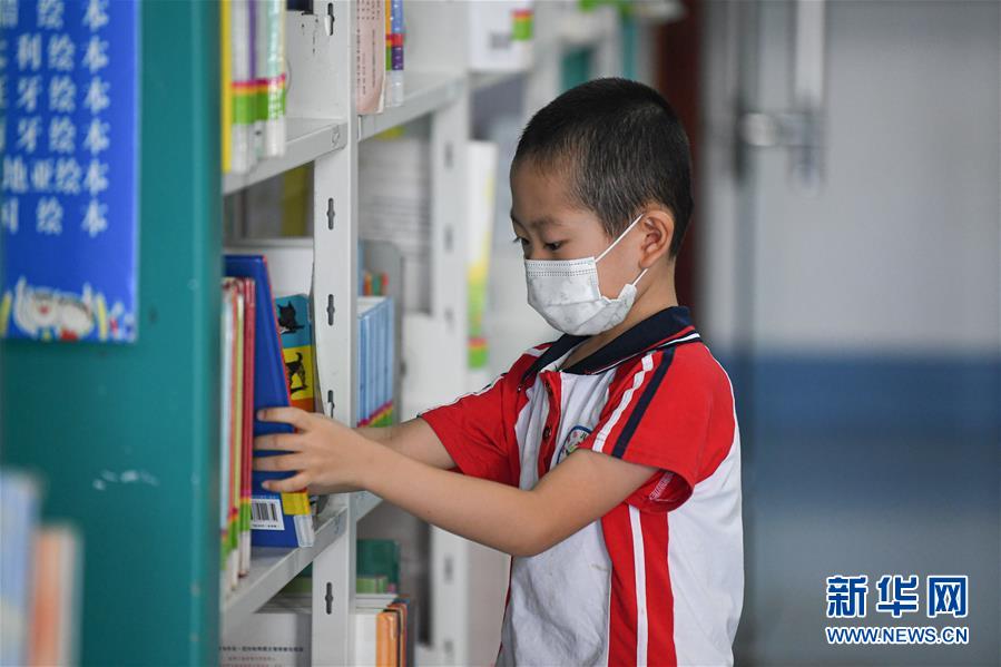 8月8日,小朋友在位于海口的海南省圖書館查找圖書。新華社記者 蒲曉旭 攝