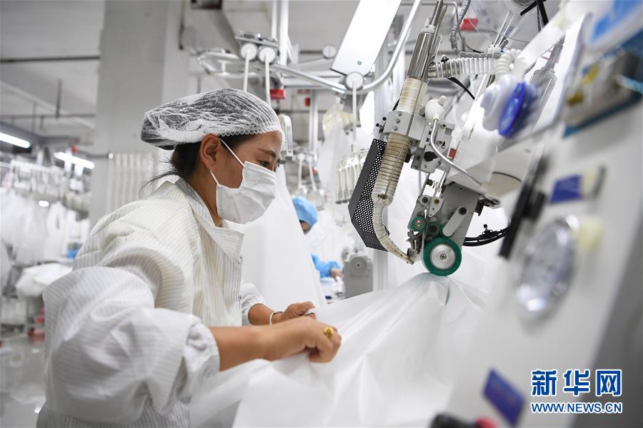 8月9日,甘肅拓奇扶貧車間的員工在服裝加工生產(chǎn)線上作業(yè)。甘肅拓奇扶貧車間位于甘肅省臨夏回族自治州積石山縣,是依托東西部扶貧協(xié)作平臺(tái)引進(jìn)的服裝加工企業(yè)。扶貧車間建成投產(chǎn)以來帶動(dòng)就業(yè)近300人,其中吸納建檔立卡貧困戶就業(yè)110人,實(shí)現(xiàn)了貧困群眾就地就近就業(yè)增收的目的,為助推當(dāng)?shù)孛撠毠?jiān)及縣域經(jīng)濟(jì)發(fā)展發(fā)揮了重要作用。新華社記者陳斌攝。