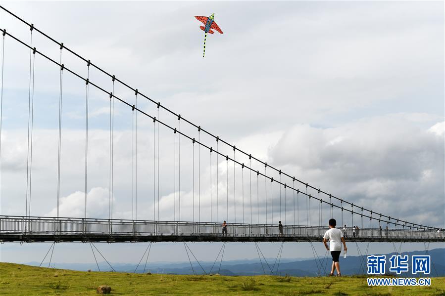 8月8日,游客在貴州省龍里油畫(huà)大草原旅游觀(guān)光。近日,貴州省黔南布依族苗族自治州龍里縣境內(nèi)氣候宜人,龍里油畫(huà)大草原、“龍門(mén)鎮(zhèn)”武俠文化主題景區(qū)等景點(diǎn)吸引眾多游客前來(lái)觀(guān)光旅游。新華社記者楊文斌攝。