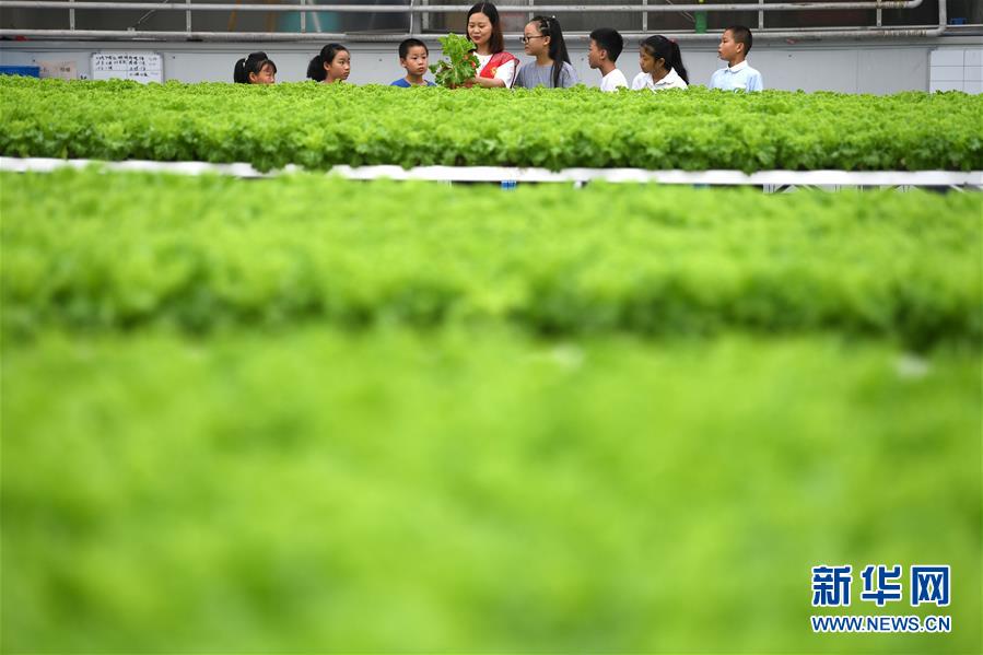 8月9日,在花崗鎮(zhèn)現(xiàn)代農(nóng)業(yè)示范區(qū)一家蔬菜種植企業(yè)內(nèi),志愿者向小朋友介紹蔬菜種植模式。當(dāng)日,安徽省肥西縣花崗鎮(zhèn)開展暑期“親近自然體驗(yàn)田園”活動(dòng),邀請轄區(qū)兒童參觀花崗鎮(zhèn)現(xiàn)代農(nóng)業(yè)示范區(qū),感受現(xiàn)代農(nóng)業(yè)的魅力。新華社記者劉軍喜攝。