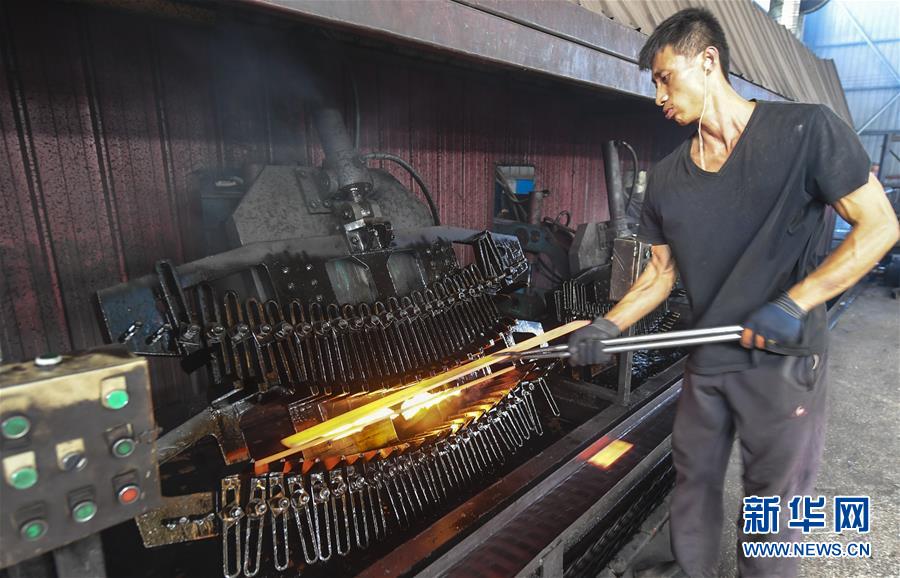8月9日,河北大城縣南趙扶鎮(zhèn)一家板簧生產(chǎn)企業(yè)員工在板簧淬火生產(chǎn)線上作業(yè)。河北省大城縣南趙扶鎮(zhèn)是該縣農(nóng)機(jī)配件行業(yè)傳統(tǒng)生產(chǎn)基地。疫情以來,南趙扶鎮(zhèn)引導(dǎo)企業(yè)做好風(fēng)險(xiǎn)防范,在農(nóng)機(jī)配件行業(yè)與世界各地客商及品牌開展方式多樣的合作,出口訂單不降反升。截至目前,該縣農(nóng)機(jī)配件行業(yè)出口總銷量達(dá)8000余萬(wàn)元,較去年同期增長(zhǎng)30%。新華社記者李曉果攝。