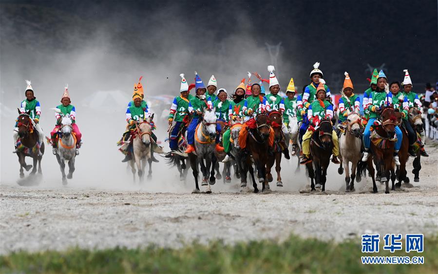 當(dāng)日,“當(dāng)吉仁”賽馬節(jié)比賽之一的五公里馬長(zhǎng)跑比賽在西藏拉薩市當(dāng)雄縣賽馬場(chǎng)舉行。一年一度的“當(dāng)吉仁”賽馬節(jié)8月8日在平均海拔4300米的當(dāng)雄縣開(kāi)幕,來(lái)自當(dāng)雄草原的牧民,騎著自家的馬匹參加比賽,策馬揚(yáng)鞭,一決高下。