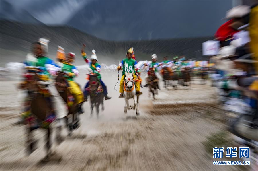 8月10日,騎手馳騁在當(dāng)雄縣賽馬場(chǎng)。新華社記者普布扎西攝。