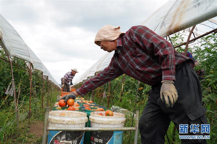 8月11日,在寧安市慶雨蔬菜專業(yè)合作社蔬菜產(chǎn)業(yè)園基地,工人把剛采摘下來的西紅柿裝入桶中準(zhǔn)備運(yùn)走。近年來,黑龍江省寧安市把設(shè)施蔬菜作為精準(zhǔn)扶貧的主導(dǎo)產(chǎn)業(yè)來抓,組織吸納貧困戶貸資加入產(chǎn)業(yè)合作社,帶動貧困戶脫貧增收。寧安市將全市500余戶貧困戶的小額信貸資金集中投放到寧安市慶雨蔬菜專業(yè)合作社,建設(shè)蔬菜產(chǎn)業(yè)園基地,在帶動貧困戶脫貧增收的同時,壯大合作社蔬菜產(chǎn)業(yè)。新華社記者王建威攝。