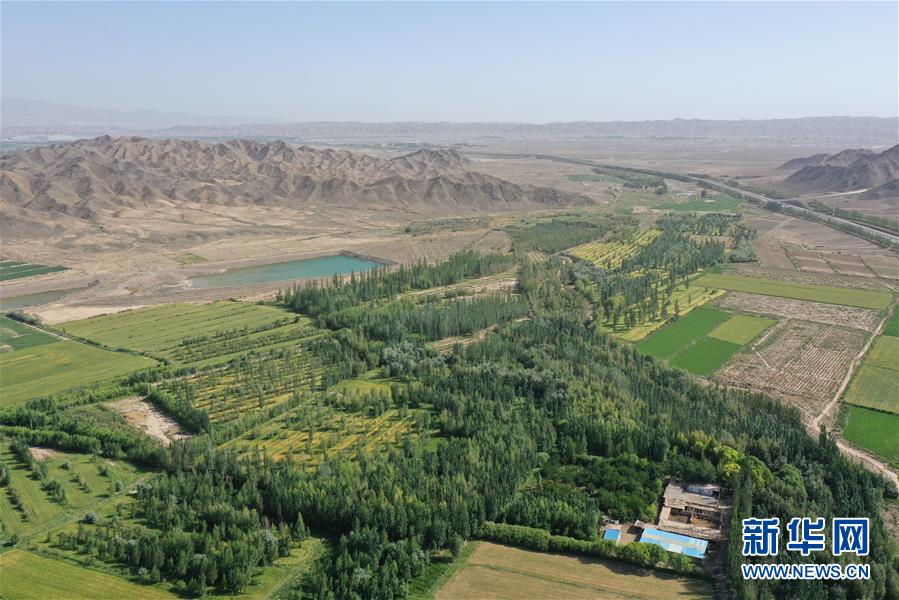 甘肅省金昌市永昌縣下四壩村村民徐文國(guó)的家庭林場(chǎng)(7月10日攝,無(wú)人機(jī)照片)。新華社記者 杜哲宇 攝