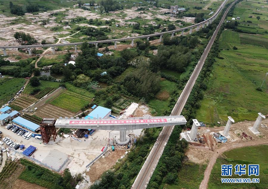 這是8月12日拍攝的水蚌鐵路蚌埠段改線(xiàn)工程?hào)|站疏解線(xiàn)特大橋跨越京滬鐵路上行線(xiàn)轉(zhuǎn)體梁轉(zhuǎn)體施工現(xiàn)場(chǎng)(無(wú)人機(jī)照片)。當(dāng)日,由中鐵一局承建的水蚌鐵路蚌埠段改線(xiàn)工程?hào)|站疏解線(xiàn)特大橋跨越京滬鐵路上行線(xiàn)64米T構(gòu)轉(zhuǎn)體梁成功實(shí)現(xiàn)轉(zhuǎn)體。新華社記者 劉軍喜 攝