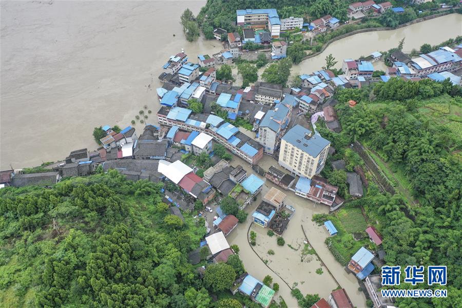 8月13日,在重慶市潼南區(qū)米心鎮(zhèn),涪江水位明顯上漲,洪水倒灌進(jìn)場鎮(zhèn)(無人機(jī)照片)。受上游強(qiáng)降雨影響,嘉陵江近日出現(xiàn)明顯漲水過程,“嘉陵江2020年第1號洪水”已在嘉陵江支流涪江形成。重慶市正式啟動洪水防御Ⅱ級應(yīng)急響應(yīng)。據(jù)初步統(tǒng)計(jì),截至13日16時30分,位于涪江畔的重慶市潼南區(qū),沿涪江7個鎮(zhèn)街不同程度受災(zāi),受災(zāi)人數(shù)8209人,轉(zhuǎn)移人口6658人,農(nóng)作物受災(zāi)面積5579畝。新華社記者黃偉攝