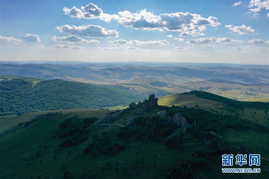 這是8月11日拍攝的克什克騰石陣景區(qū)風景(無人機照片)??耸部蓑v旗位于內蒙古自治區(qū)赤峰市西北部,境內的湖泊、河流、草原、森林等自然景觀,讓人們流連忘返。新華社記者徐欽攝