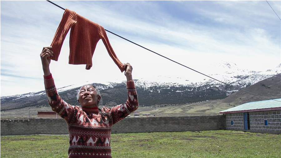 5月30日,四川甘孜藏族自治州理塘縣奔戈鄉(xiāng)卡灰村村民洛登展示自家的“脫貧賬本”。