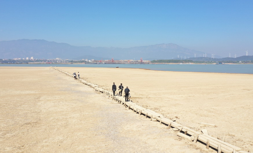 2019年10月30日,江西仙女湖旅游股份有限公司測量人員乘坐工作船對明代萬年橋進行測量,該橋橋身凸出水位最高處達1.64米。