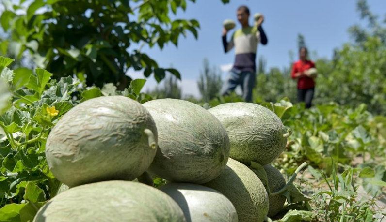 近日,新疆喀什地區(qū)巴楚縣迎來留香瓜的豐收季,瓜農(nóng)們忙著采摘留香瓜,準(zhǔn)備外運(yùn)銷售。
